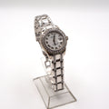 The 28mm case is made from solid 18Kt white gold, offering a sleek and polished appearance that adds a touch of glamour to any wrist. The factory bezel further enhances the watch's luxurious look, with its gleaming finish highlighting the brilliance of the white gold. The dial is meticulously designed with signature Rolex markers and hands, offering legibility and understated beauty.