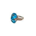 This fully hallmarked 18K white gold ring is a stunning showcase of London blue topaz. It features two oval-cut London blue topaz gemstones, with a total carat weight of approximately 10cts. The deep, rich blue hue of the topaz creates a striking contrast against the gleaming white gold setting, making this ring both bold and sophisticated.