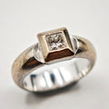 Introducing a refined and timeless piece: a 16kt white gold diamond solitaire ring. This elegant ring features a clean white princess cut diamond, approximately 0.25cts, with G color and VS clarity, ensuring brilliant sparkle and clarity. The 16kt white gold setting beautifully enhances the diamond's brilliance, offering a sophisticated and modern design. With a total weight of 7.81g and a size 11, this ring provides both luxury and comfort, making it an exquisite addition to any collection or a perfect choice for marking a special occasion.